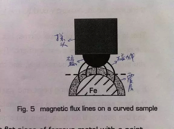 但是如果實(shí)際測(cè)量時(shí)基體的幾何形狀變了比如變成了圓柱體但涂層厚度不變。磁力線會(huì)有什么樣的變化呢?我們來(lái)看看圖Fig.5