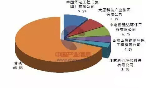 產(chǎn)業(yè)信息網(wǎng)發(fā)布的《2015-2020年中國火電脫硝市場運行態(tài)勢及發(fā)展趨勢研究報告》顯示從截止2014年底的火電脫硝建設行業(yè)數(shù)據(jù)來看,行業(yè)具有很高的集中度。