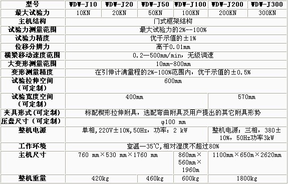 產品概述: WDW-J系列電子式萬能試驗機主機與輔具的設計融匯了我公司的先進技術,電子萬能拉伸壓縮彎曲試驗機,外形美觀,操作方便,2噸電子萬能試驗機,性能穩(wěn)定可靠。系統(tǒng)通過全數(shù)字控制器,經調速系統(tǒng)控 制伺服電機轉動,經減速系統(tǒng)減速后通過精密絲杠副帶橫梁上升、下降,電子萬能試驗機的種類,完成試樣的拉伸力學性能試驗,無污染、噪音低,wdt電子萬能試驗機,效率高,電子萬能試驗機源峰,具有較寬的調速范圍。該機廣泛 應用于建筑建材、航空航天、機械制造、電線電纜、橡膠塑料、紡織、家電等行業(yè)的材料檢驗分析,30kn電子萬能試驗機,是科研院校、大專院校、工礦企業(yè)、技術監(jiān)督、商檢仲裁等部門 的理想測試設備。 功能特點: 1主機 1.1主機采用高鋼度門式框架結構,強度高、變形小; 1.2 采用進口高精度滾珠絲杠,數(shù)顯電子萬能試驗機,傳動高效平穩(wěn); 1.3 傳動部分采用圓弧齒同步帶傳動,傳動過程中雙向無間隙; 1.4交流伺服電機保證傳動平穩(wěn),力矩穩(wěn)定,具有過流、過壓、過載等保護裝置; 1.5 夾具經特殊設計,夾持牢固,100n電子萬能試驗機,操作方便,無鉗口滑移現(xiàn)象; 1.6 特殊工藝保證試驗機同軸度,電子萬能試驗機保養(yǎng),很好的消除了不規(guī)則試樣對傳感器的影響。 2控制系統(tǒng) 觸摸健操作方式,30噸電子萬能試驗機,液晶顯示器實時顯示,克服了老式數(shù)碼管顯示容易發(fā)生故障的難題,并且美觀大方、方便快捷。 技術參數(shù):