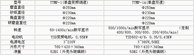 TYMP-1無級變速金相試樣磨拋機(jī) 無極調(diào)速,全自動金相拋光研磨機(jī),轉(zhuǎn)動平穩(wěn),,噪音低。 造型美觀,金相試樣自動研磨機(jī),材料考究,,該機(jī)的集污盤和罩采用玻璃鋼整體制成。 本機(jī)一個頭三種功能為一身,金相切片研磨機(jī),使用時只需更換磨盤或拋盤和研盤就能完成各種試樣的粗磨、細(xì)磨、干磨、濕磨和研磨及拋光等各道工序。 磨、拋、研盤轉(zhuǎn)速獨(dú)立操作。適應(yīng)各種材料的試樣制備。 功能特點(diǎn): TYMP-1A單盤雙速金相試樣磨拋機(jī) 單盤雙速,金相樣品自動研磨機(jī),轉(zhuǎn)動平穩(wěn),金相拋光研磨機(jī),噪音低。 造型美觀,材料考究,該機(jī)的集污盤和罩采用玻璃鋼整體制成。 本機(jī)一個頭三種功能為一身,金相研磨機(jī),使用時只需更換磨盤或拋盤和研盤就能完成各種試樣的粗磨、細(xì)磨、干磨、濕磨和研磨及拋光等各道工序。 磨、拋、研盤轉(zhuǎn)速獨(dú)立操作。適應(yīng)各種材料的試樣制備。 該機(jī)可定制基本轉(zhuǎn)速為500/1000r/min,金相研磨機(jī)價格,并備有400/800r/min、300/600r/min或200/400r/min,,供用戶在訂貨時選擇。 技術(shù)參數(shù):