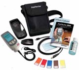 包括:主機、探頭、標(biāo)準(zhǔn)箔、耦合劑、帶腰夾的橡膠保護套、3節(jié)7號電池、尼龍便攜軟包、中英文說明書、證書
